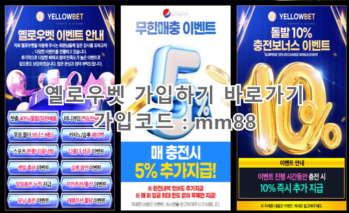 옐로우벳은 회원들의 수요가 가장 높은 이벤트들만 엄선하여 시행함으로써 업계에서 높은 참여 만족도를 달성하고 있습니다. 888토토