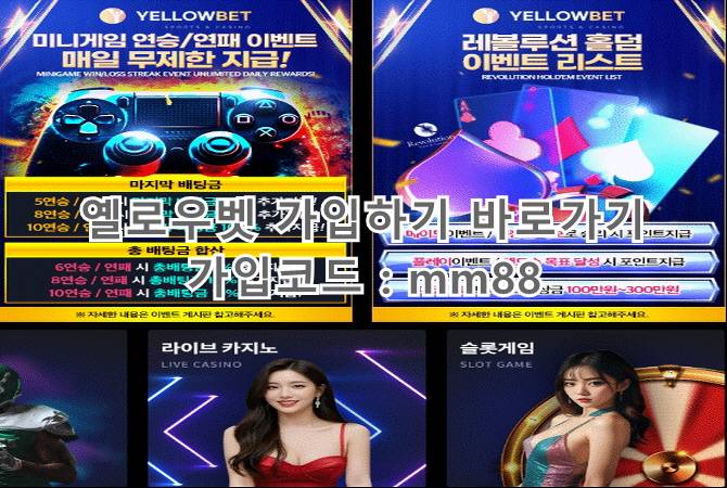 국내 최대 자본력을 자랑하는 옐로우벳은 해외 유명업체를 넘어서는 배당과 국내 업체의 장점들을 통합한 메이저놀이터입니다.